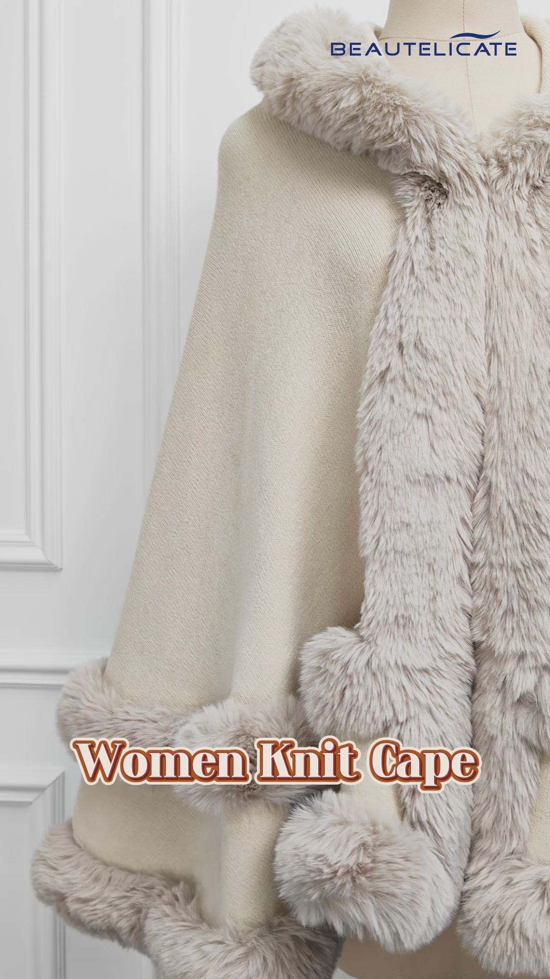 Cozy Tight-Knit Cape w/ Faux Fur Hood.
